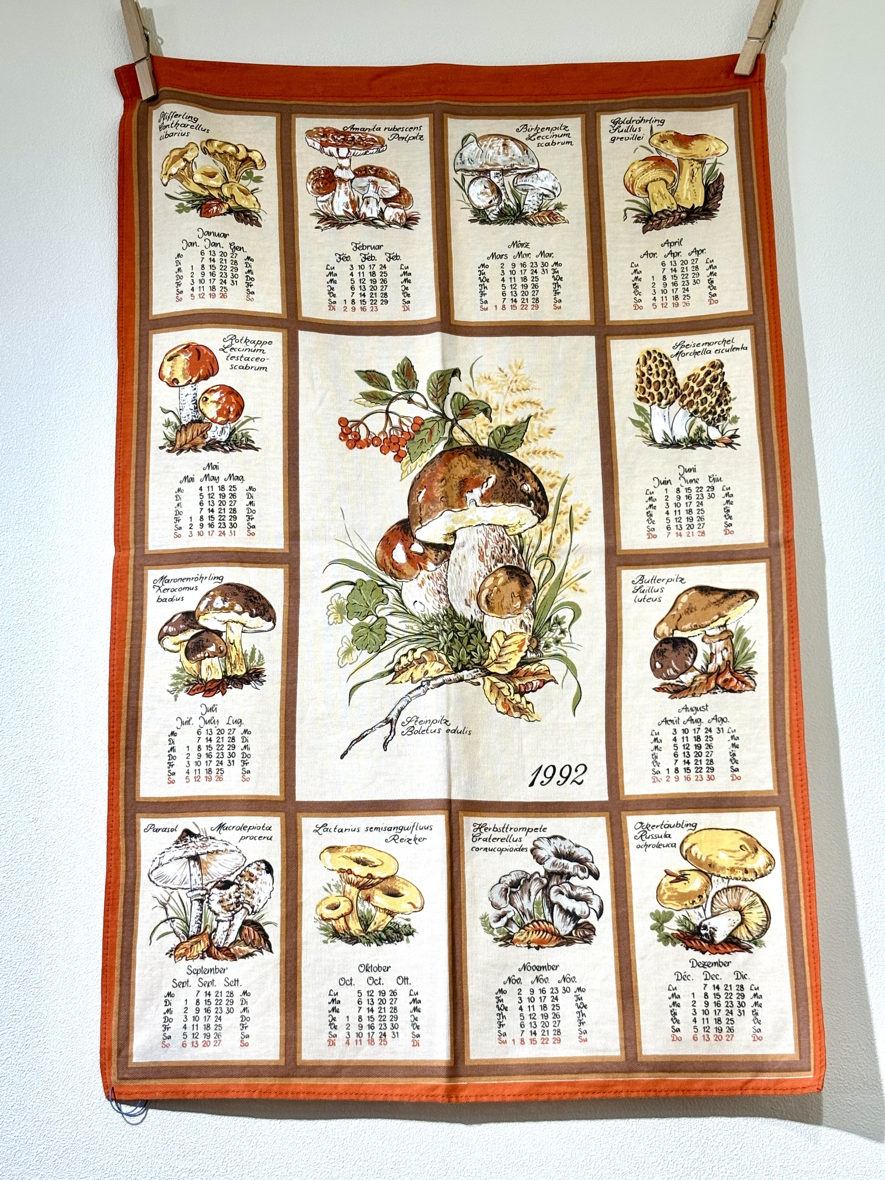 1992年のヴィンテージのキノコ柄の布カレンダーです。